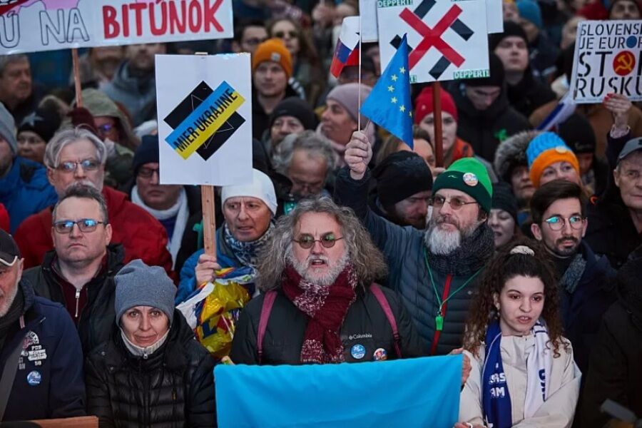 تظاهرات مردم اسلواکی در اعتراض به دیدگاه جانبدارانه نخستوزیر در قبال مسکو